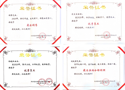 欣慰兰兰的进步,特授予侯兰兰2020优秀员工!