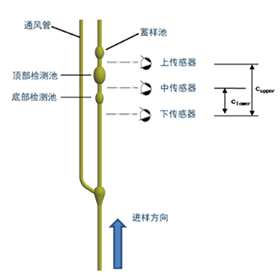 U-Visc采用玻璃毛细管重力低落法,粘度管上有3个传感器和2个不同的检测轨迹:下部的轨迹用于高粘度样品,上部的轨迹用于较低粘度样品。在采样期间,系统检测样品从下传感器行进到中间传感器的时间,从而建立近似粘度。如果粘度高,样品将在下部轨迹中检测;如果粘度低,样品将被拉到上传感器并在上部轨迹中检测。因此,3个传感器粘度管具有非常宽的检测范围,大约100倍,以及快速流动时间。