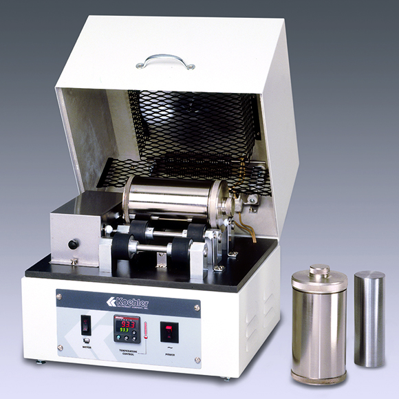 克勒润滑脂滚筒安定性测定仪 K18345,用于测定润滑脂在滚筒试验机上按规定温度工作2小时后的稠度变化,即工作锥入度的前后变化,以此来评判润滑脂的机械剪切安定性。仪器满足ASTM D1831 和相关标准,具有单、双、四单元模块配置的各型滑脂滚筒安定性测定仪,仪器的微机程序可实现精准控温,用户可根据需求同时选配高温模块。仪器的自动恒温控制可设置到93.3°C,滚筒旋转速度可设为10或165rpm。仪器驱动系统由一个结实的电机驱动、配置了灵活切换的传动齿轮,随时实现需要的工作速度。微处理器PID控制提供快速精准的恒温控制,并有过热控制电路进行保护,电路在温度超过设置的截止点时会切断电源。双行LED显示屏以°C或°F格式显示实际温度值和设定值温度值。RS232通信软件、温度梯度设置以及其他增强功能可作为额外附加配置,需要时可联系代理商确定配置。铸铝风扇和1200瓦的加热器提供高效、均匀的热分布。铰链盖上的刻度盘温度计显示了腔室温度。仪器为了操作人员的安全,在加热器和传动链单元都加装了保护盖。绝缘钢柜和底座采用耐用聚氨酯瓷漆饰面。高温模块,可将温度范围扩大到160°C。对于超出现有标准D1831中列出的时间/温度,可使用高温模块装置进行试验。